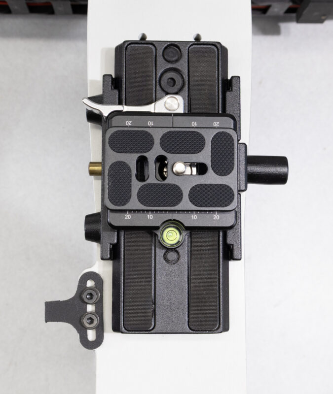 On the new production rigs, an arca-style rail is mounted directly on the Z plate.