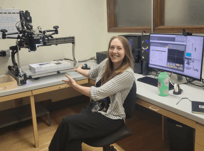 Elizabeth Postema at the GIGAmacro whole drawer imaging station.