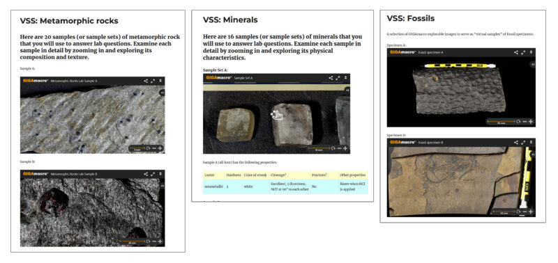 Screenshots showcasing just a few of the thousands of gigapixel images used in the Historical Geology curriculum.
