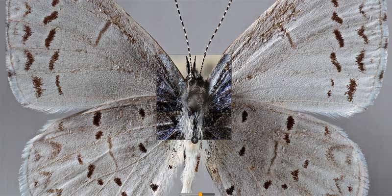 Use the Viewer to explore the front and back side of selected butterflies, below. The comparison allows researchers to study the patterns and structure of the specimens through the precisely aligned and synchronized images. Use the X-ray Tool to ‘see through’ the top image, or use the Transparency Slider to change the opacity of the entire image.